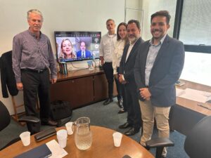 Maciel Paiva, Pedro Bruno e representantes da Vale. No vídeo, a subsecretária de Concessões e Parceria da Seinfra, Fernanda Alen Gonçalves da Silva e representantes da Codemge. Foto: Prefeitura de Itabira