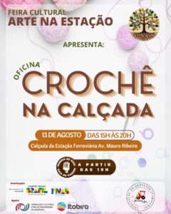 A “Feira Cultural Arte na Estação” convida toda a comunidade para prestigiar esse momento especial ligado à arte, cultura, produção artesanal e de apoio às ações ligadas ao terceiro setor: a nova edição do projeto “Crochetando na Calçada”, realizado pela Associação de Artesãos Itabiranos Fazendo Arte (AIFA), pela terceira vez. O evento será na calçada da Estação Ferroviária na avenida. Mauro Ribeiro Lage, na próxima quarta-feira (13), começa às 15h e segue até às 20h
