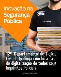 O 12º Departamento de Polícia Civil, onde a Delegacia Regional de Itabira está inserida, avançou na gestão de procedimentos criminais com a implementação da virtualização dos inquéritos policiais (IPs). A medida, em consonância com os investimentos tecnológicos e a política de modernização da instituição, estabelece a tramitação eletrônica dos inquéritos com o Poder Judiciário, utilizando a ferramenta denominada como “Processo Judicial Eletrônico (PJ-e)”, do Tribunal de Justiça de Minas Gerais (TJMG).