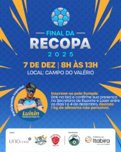 Para participar, é necessário se inscrever pelo Sympla e retirar o ingresso físico na sede da SMEL, mediante a doação de um quilo de alimento não perecível. A entrada no estádio será permitida somente com o ingresso. A Recopa será disputada pela equipe Serro Verde, campeã do Campeonato Distrital, que aguarda o vencedor do Campeonato Amador para a grande decisão do próximo dia 30 de novembro. O Campeonato Amador é realizado pela Liga Itabirana de Futebol Amador (LIFA), com apoio da Prefeitura de Itabira. A Recopa do Campeonato Amador é parceria entre a LIFA e a Prefeitura de Itabira, por meio da SMEL.