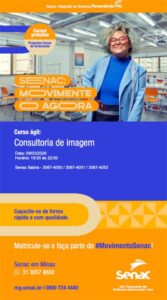 A unidade de Itabira do Serviço Nacional de Aprendizagem Comercial (Senac) oferece qualificação gratuita em consultoria de imagem, ferramenta que vai muito além de escolher a roupa. Ela trabalha percepção, comunicação e estratégia, alinhando aparência, comportamento e objetivos. O comportamento é decisivo desde entrevistas de emprego, além do pertencimento ao ambiente que ocupa. Mostrando protagonismo no espaço ocupado e passando mensagem corporal.