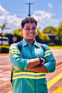 Gustavo Ribeiro, 22 anos, admitido em 2025 por meio do Jovem Aprendiz. Crédito: autoretrato