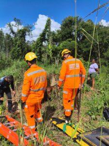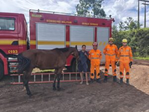 Corpo de Bombeiros retira equino de fossa próxima à bacia do Rio de Peixe