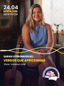 Nesta sexta-feira (24), às 20h, no deck da Fundação Cultural Carlos Drummond de Andrade (FCCDA), será realizado o “Sarau Literomusical: Versos que Aproximam”. A apresentação será de Vanessa Lima, acompanhada pelo músico André Varou, em um encontro sensível entre música e poesia, celebrando a conexão entre melodia e palavra sob o céu mineiro. A atividade integra a 6ª Semana Estadual de Incentivo à Literatura.