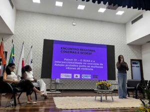 A gestora da Secretaria Municipal de Assistência Social (SMAS), Nélia Cunha, apresentou os avanços a partir da parceria entre o CREAM e a DEAM, iniciativa que fortalece o acolhimento, amplia o acesso a direitos e garante atendimento mais humanizado às mulheres em situação de violência. “O enfrentamento à violência contra a mulher exige sensibilidade, compromisso e integração entre os serviços públicos. Em Itabira, trabalhamos para que cada mulher seja acolhida com respeito, escuta qualificada e acesso efetivo à rede de proteção”, destacou. O evento ocorreu nos dias 23 e 24 de abril.