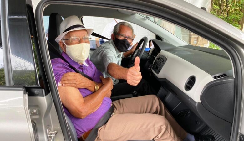 Em drive-thru tem início em Itabira a imunização para pessoas acima de 89 anos