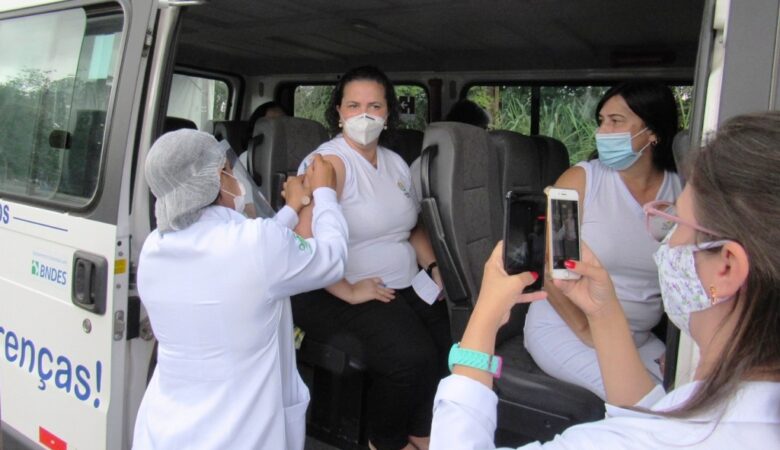 Primeiro dia de vacinação via drive-thru imuniza 240 trabalhadores
