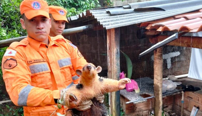 Corpo de Bombeiros captura tamanduá-mirim em área urbana de Itabira