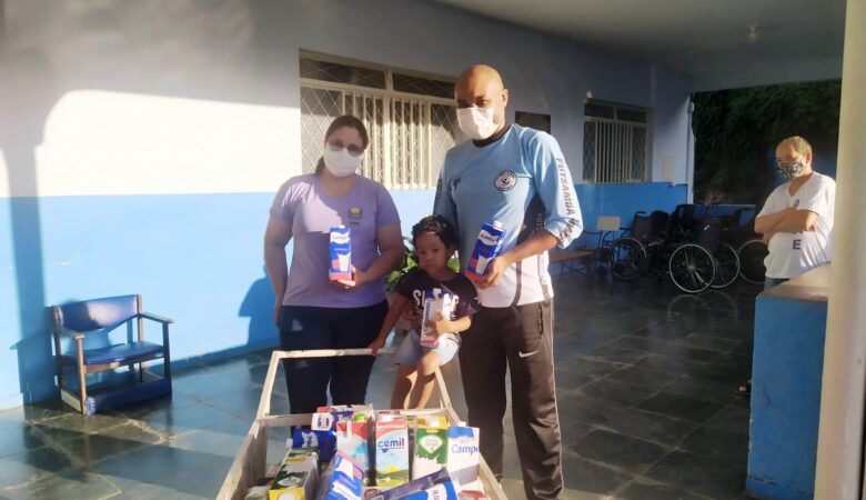 Futsamba entrega leite arrecadado no evento “Domingo na Praça”