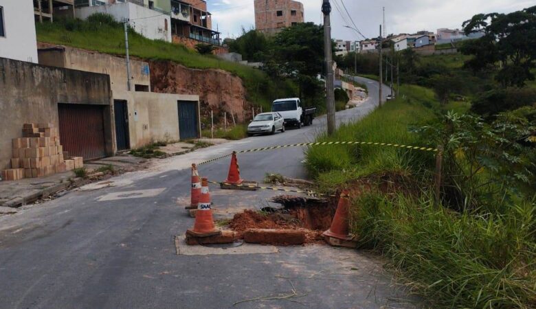 Via pública no bairro Jardim dos Ipês, interditada para correção de vazamento
